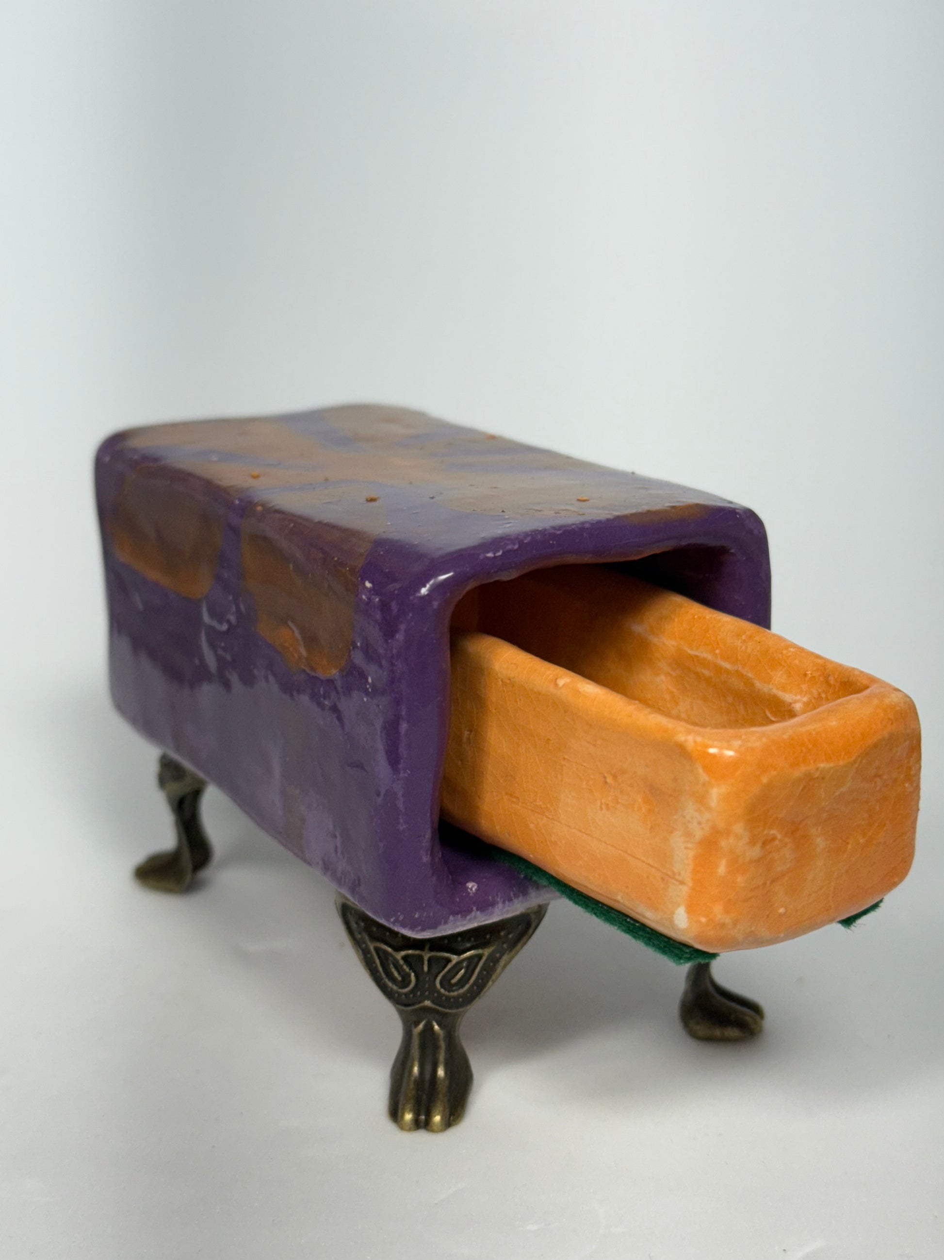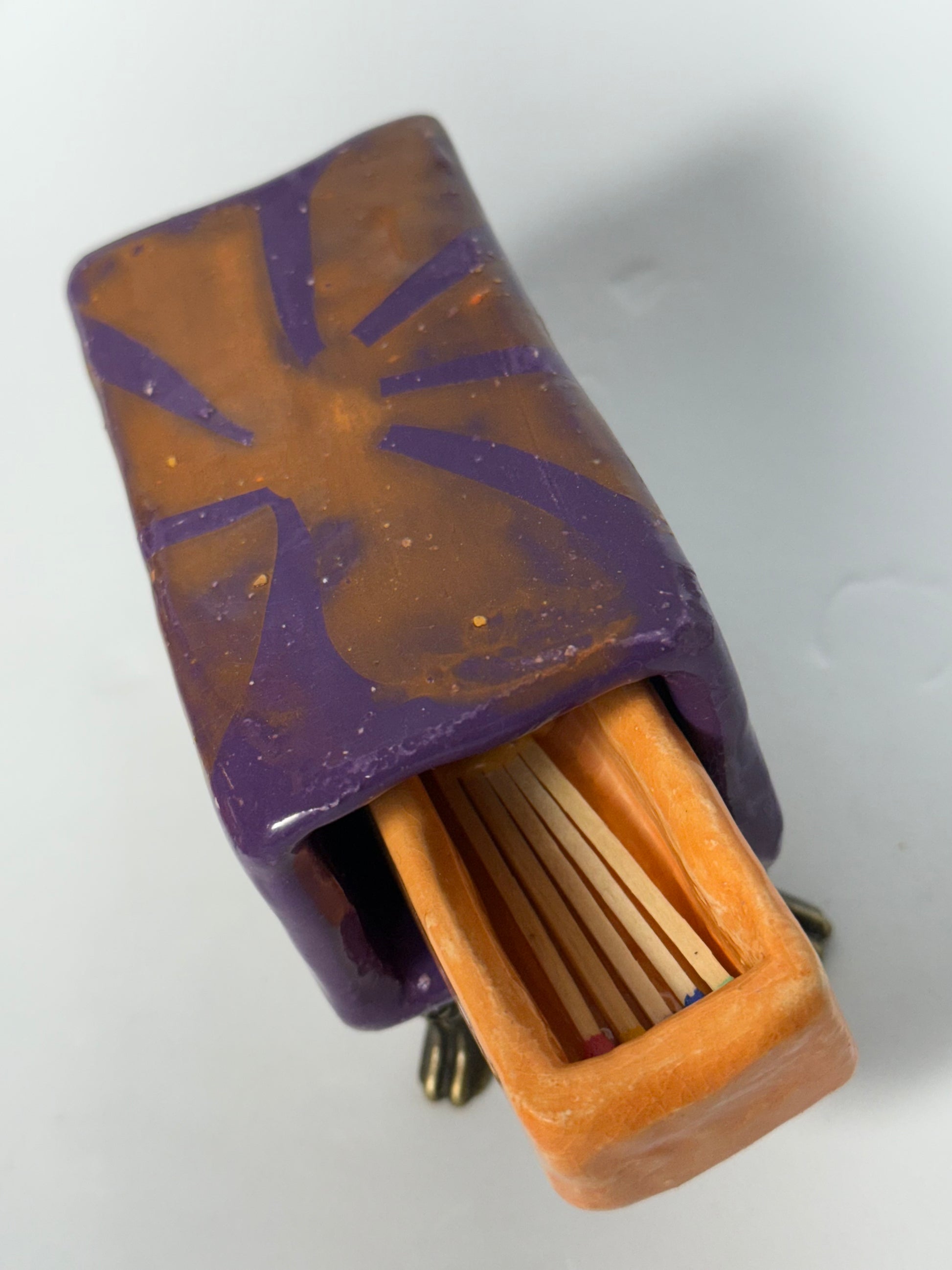 Brighten up your camping trip with this colorful Match Box! With vibrant shades of purple, orange, and yellow, you'll never lose sight of your matches. Stay prepared and stylish at the same time.